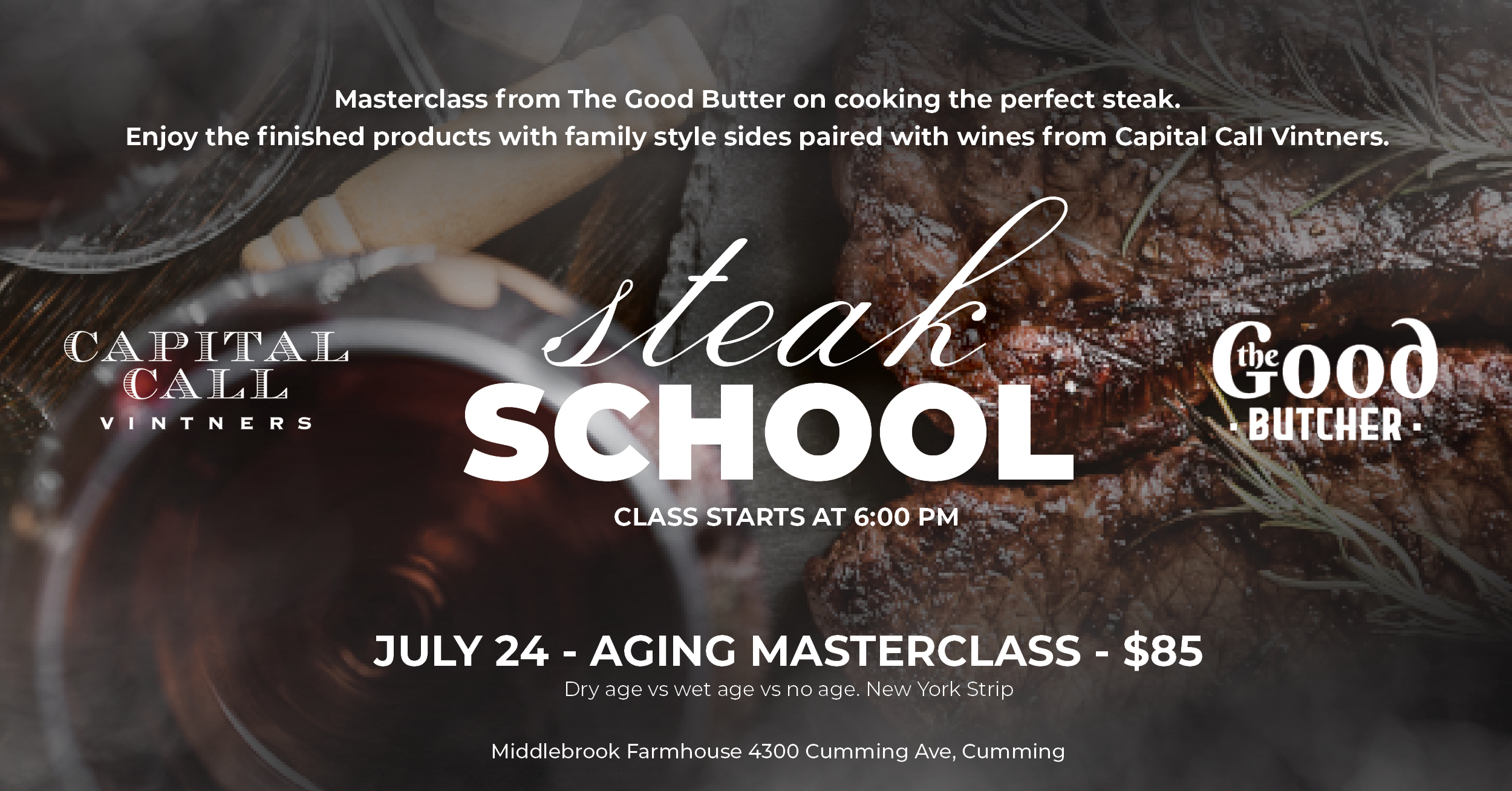 Reserve your spot to learn more about beef aging methods, improve your cooking skills, and enjoy good food and wine in a relaxed setting.
