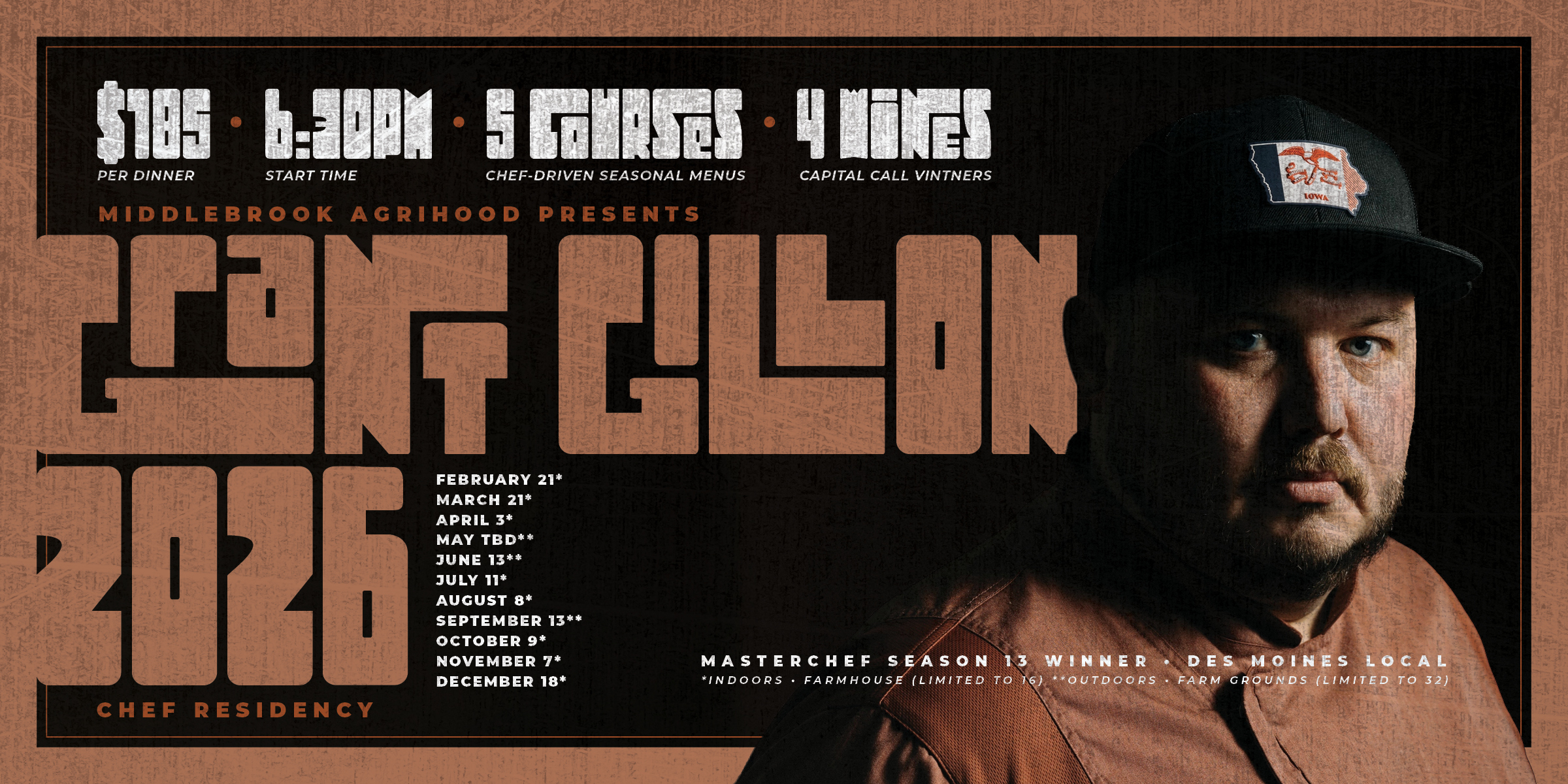We’re thrilled to announce an exciting new partnership for 2026! Middlebrook Farm will welcome Grant Gillon, local chef and MasterChef Season 13 winner, for an exclusive chef residency.