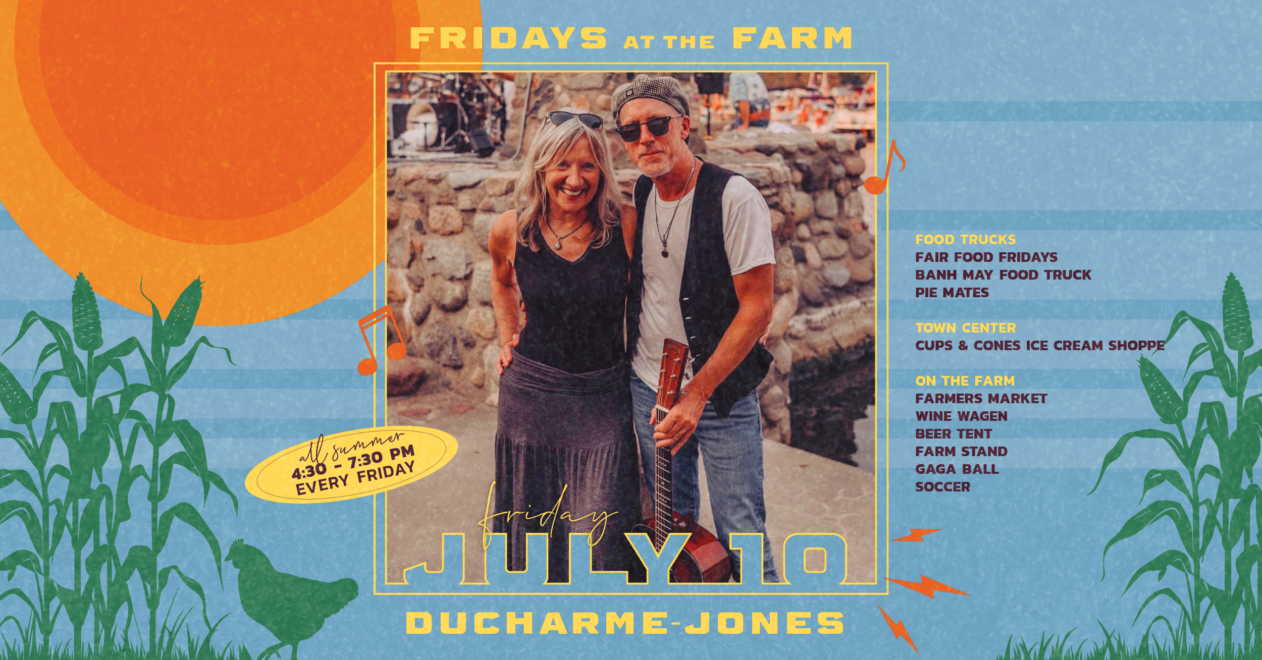 Friday, July 10 | 4:30 – 7:30 PM Live Music: Ducharme-Jones Food Trucks: Fair Food Fridays, Banh May Food Truck, Pie Mates