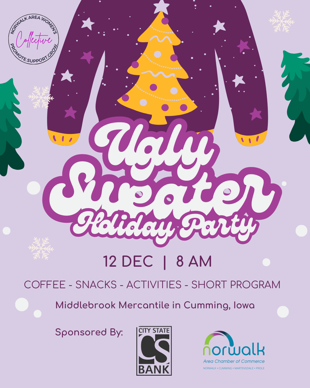 Grab your ugly holiday sweaters and join the Norwalk Area Women's Collective HOLIDAY PARTY for a festive morning of coffee, meaningful conversations, activities and a few surprises.